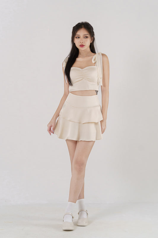 ARINA HIGHWAIST TIERED FLARE SATIN SKORTS(CHAMPAGNE)
