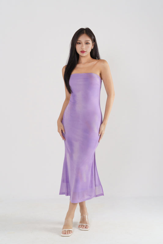 CALEIDA TIE-DYE MESH STRAPLESS MAXI DRESS(AMETHYST)