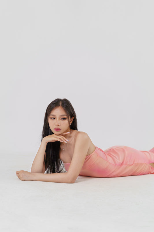 CALEIDA TIE-DYE MESH STRAPLESS MAXI DRESS(SUNKISSED PINK)