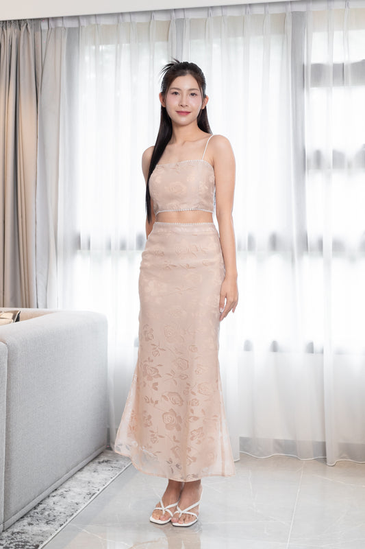 SOLEEN ORGANZA FLORAL MIDAXI SKIRT (NUDE PEACH)