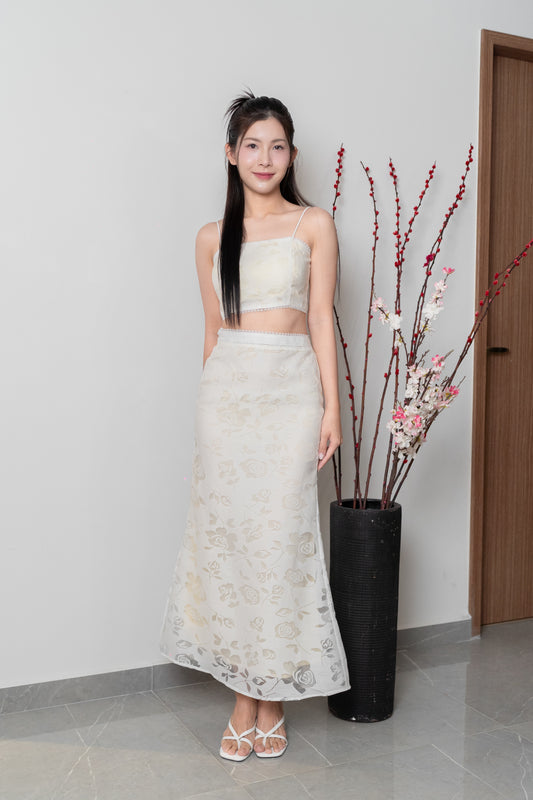 SOLEEN ORGANZA FLORAL MIDAXI SKIRT (CHAMPAGNE IVORY)