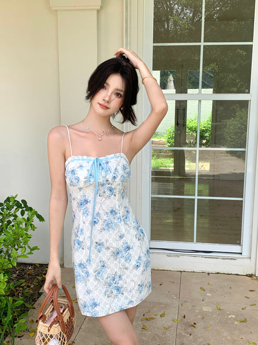 AURELIA RIBBON-TIE LACE TRIM DRESS (BABY BLUE)