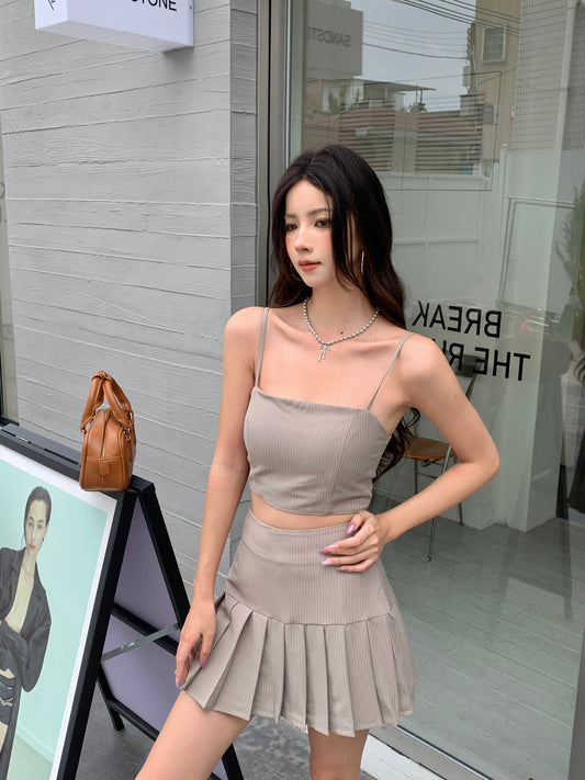 KRYSSA PINSTRIPES PLEATED SKORTS (OAT)