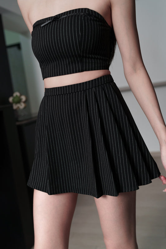 AVELLE PINSTRIPES SIDE-PLEATED SKORTS(BLACK)